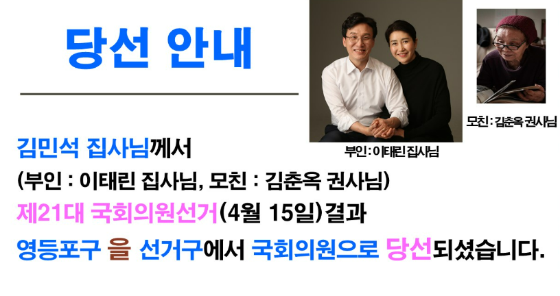 그 후 2019년 12월 12일, 같은 교회(신길교회)를 다니던 이태린 씨와 재혼했어요.